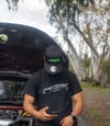 Black Gildan Shirt with Silver Silk Screen Imprint.